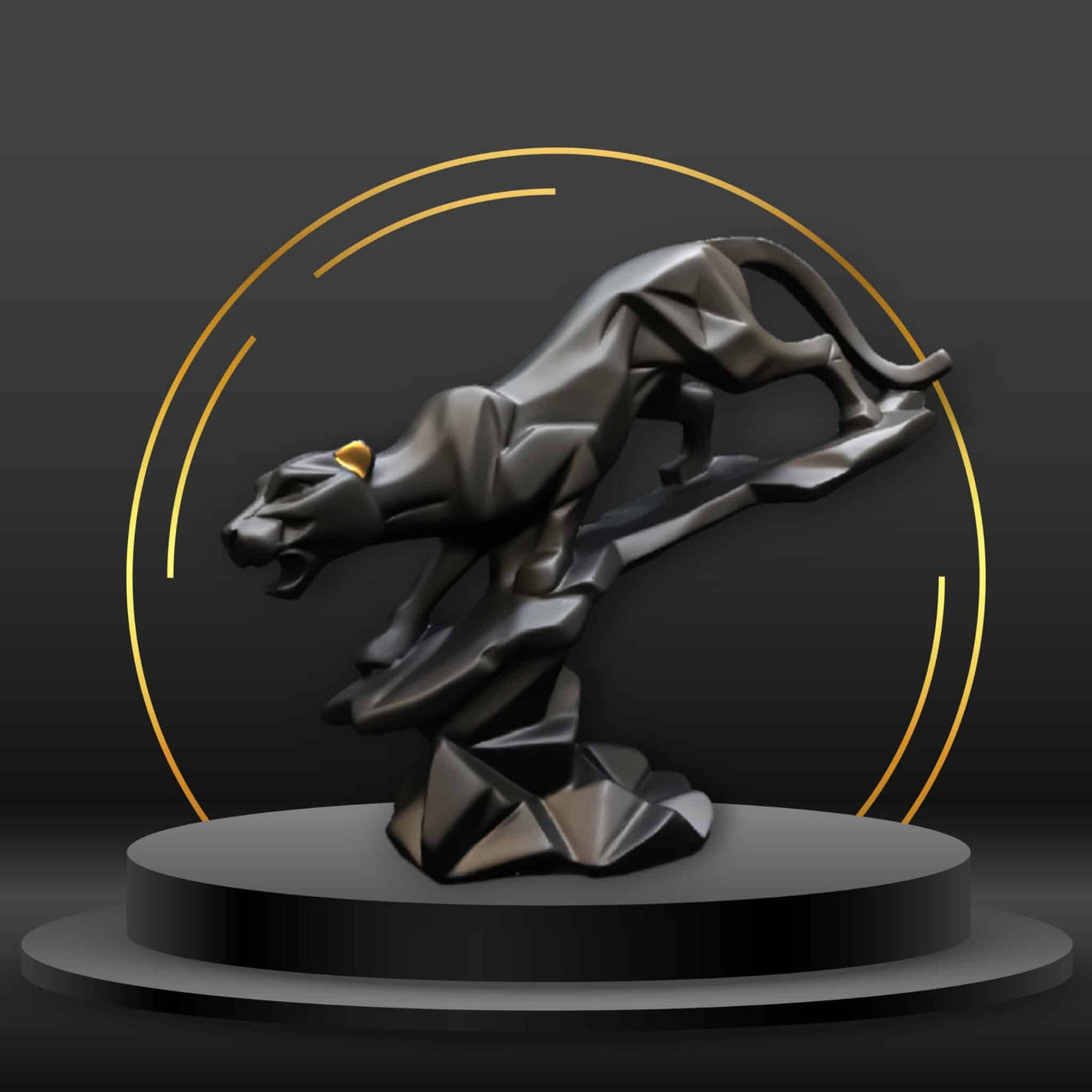 The Modern Geometric Panther Statue is a striking decor piece that will elevate any room in your home or office. Whether placed on a living room table or showcased in a display cabinet, this statue's eye-catching design makes it an excellent addition to various spaces, including children's rooms, showrooms, and offices. It pairs beautifully with contrasting colors to enhance the overall aesthetic of your space.Perfect for homes, offices, restaurants, and storefronts, this geometric panther statue works well in combination with other high-end home decor items. The deep color of the statue adds a touch of elegance, making it a versatile statement piece.At HandnArt, we pride ourselves on high-quality craftsmanship. Slight variations in the product reflect its unique handmade nature. Each item undergoes rigorous quality control checks to ensure it meets our standards before reaching you.