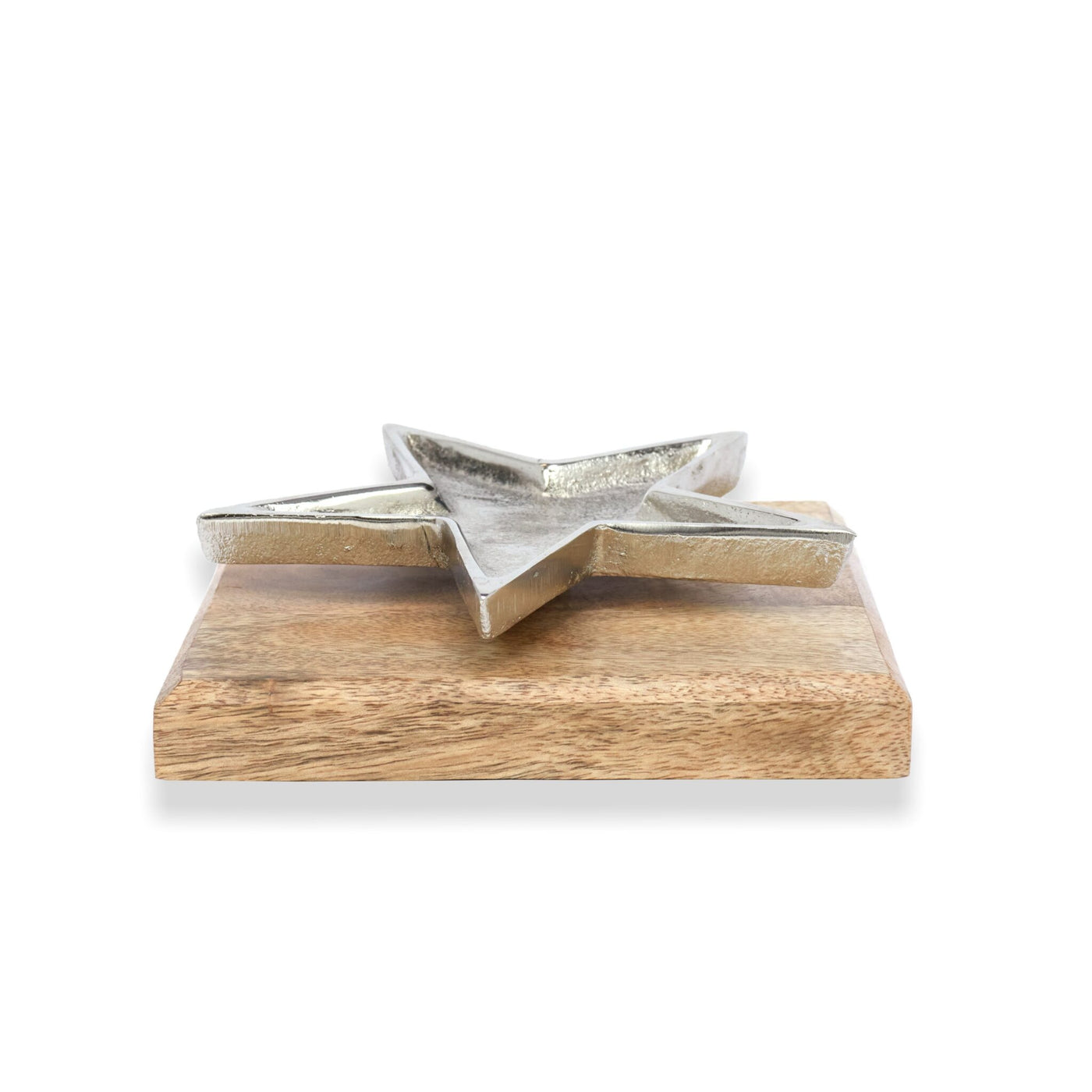 Elevate your space with the Star Candle Holder, a beautiful blend of aluminum metal and wood. Crafted from high-quality aluminum with a silver finish, this stunning candle holder features a charming metal star perched atop a natural wooden base. Its sleek design makes it a perfect addition to any room, adding a warm and inviting glow to your décor.Ideal for Christmas gifts or as a thoughtful home décor accessory, this piece adds a touch of luxury and sophistication to any setting. The golden star and sturdy wooden base create a striking contrast, making it a standout centerpiece for any occasion.Why You'll Love It: Silver Shine: The gleaming aluminum star adds elegance and charm to your home.Sturdy & Durable: Crafted with high-quality metal and wood for lasting beauty.Perfect Gift: An ideal Christmas gift or thoughtful present for any special occasion.Versatile: Great for both holiday celebrations and everyday décor.Bring a little magic to your home with the Star Candle Holder. Whether for festive occasions or as a stylish addition to your living space, it’s sure to impress. Order now and brighten your home with timeless elegance!