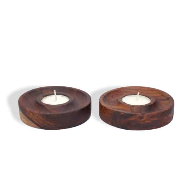 Wooden Circular Tealight Holder with 4 Tealights (Set of 2)